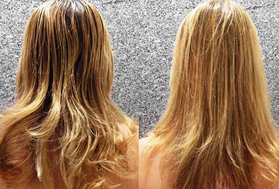 - Seque os cabelos com o secador ou faça uma escova e pranche 3 vezes cada mecha para que as cutículas sejam seladas e pronto!.